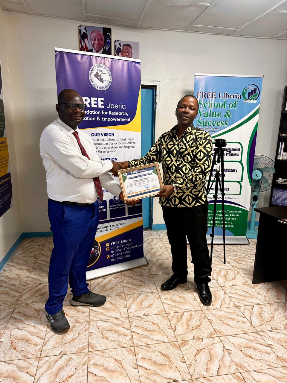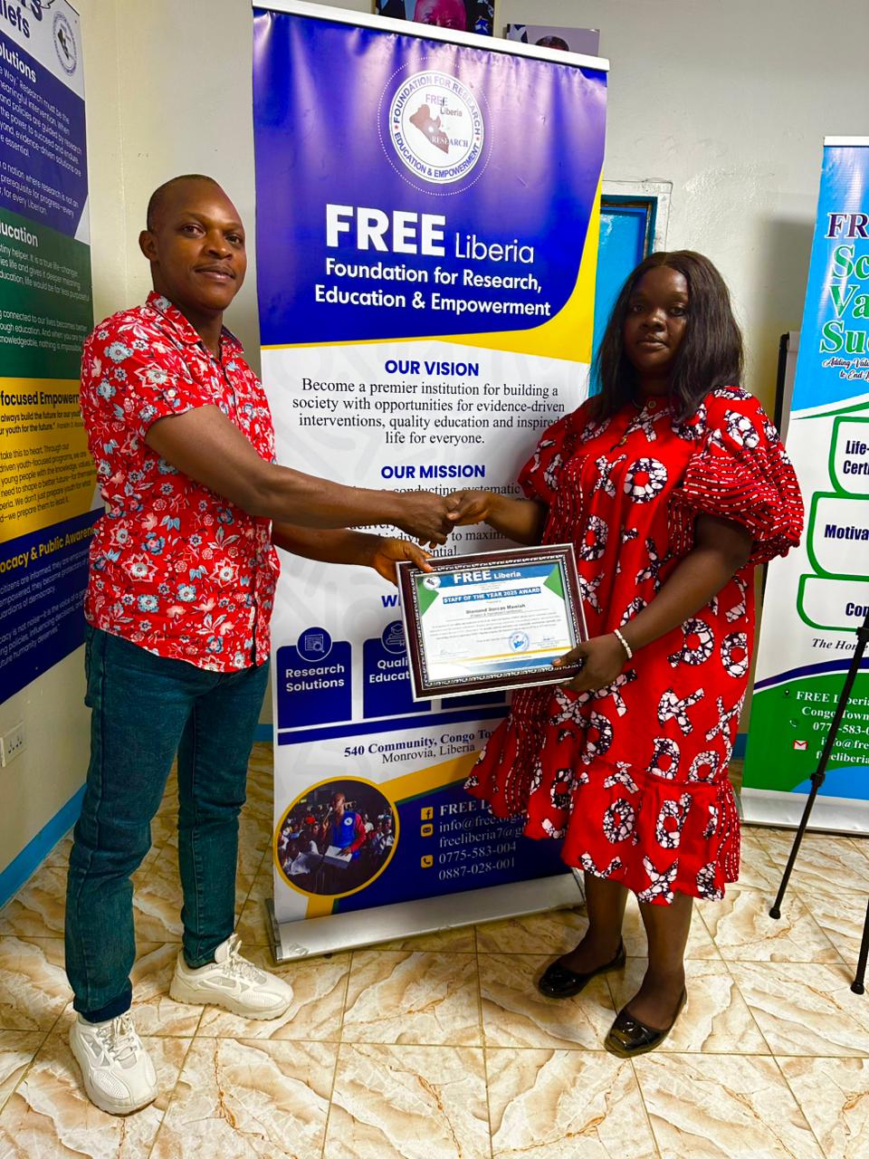 Diamond Dorcas Mawiah, Finance & Operations Coordinator, was celebrated for her selfless and dedicated service. Her integrity, diligence, and consistent effort to go above and beyond have strengthened FREE Liberia’s work, especially the School of Value & Success in 2025 and beyond. Her contribution continues to inspire our entire family.
